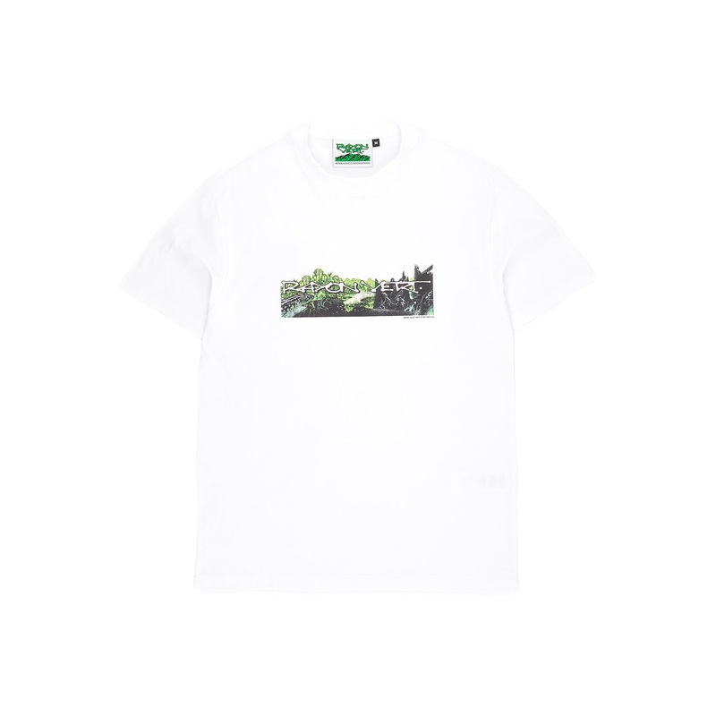 Heavyweight, high-quality, single stitched tee from Rayon Vert, with an oversized fit and a thick ribbed neckline. Digital print on silk print base. 100% cottonHeavyweight, single stitchThick ribbed necklineDigital print on silk print baseMade in ItalyRegu