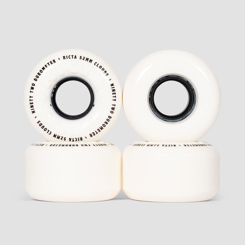 Diameter: 52mm Durometer: 92a Clouds Series Pack of 4 The soft urethane of Ricta Clouds are the perfect choice if you're skating a rough spot or just looking for a smoother ride. The 92a urethane is a happy medium that allows you to skate rough spots witho