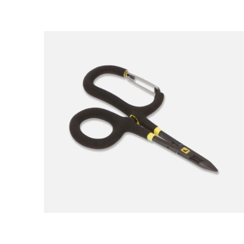 The ultimate hemostat, thoughtfully designed from the tips to the jaws to the handle. A carabiner handle means you can store anywhere and the tight angles and engineered shape accommodate all fly sizes, allow for easy hook removal, and can crimp even the h