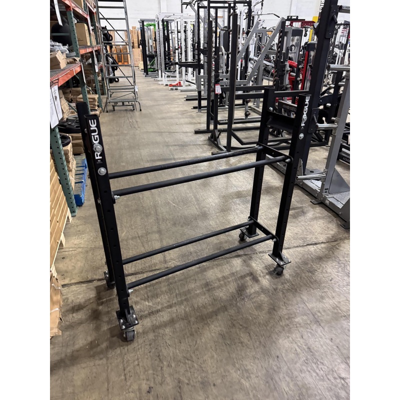 A great starting storage rack for any gym, this version of the Rogue Mass Storage System includes a pair of 43 long shelvesbuilt to hold up to six medicine ballsGear SpecsBrandRogue FitnessColorBlackMade In USAYesLength47"Width14"Height45 1/2", with wheels