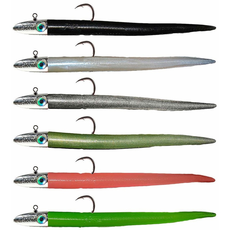 RonZ Big Game HD Series Rigged Soft Baits offer anglers the ultimate in strength and convenience with the RONZ 4X Strong Z Series swivel eye/swing hook pure tin hydro heads. With natural, fish-like shine and exceptional durability, these jig heads are desi