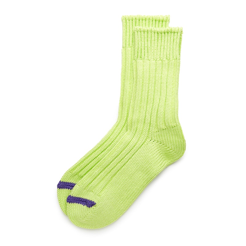 ROTOTO Chunky Ribbed Crew Socks – Lime/Purple