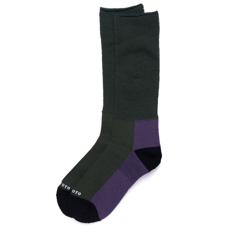 ROTOTO Hybrid Pile Merino Wool Crew Socks – Dark Green/Purple/Black