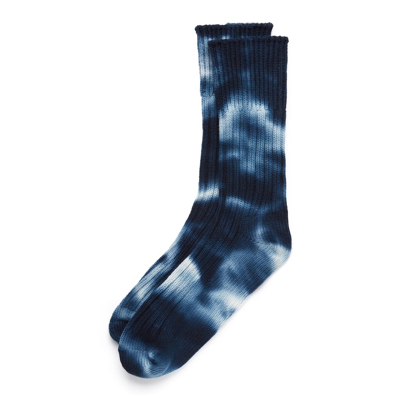 ROTOTO Tie Dye Chunky Ribbed Crew Socks – Navy/White