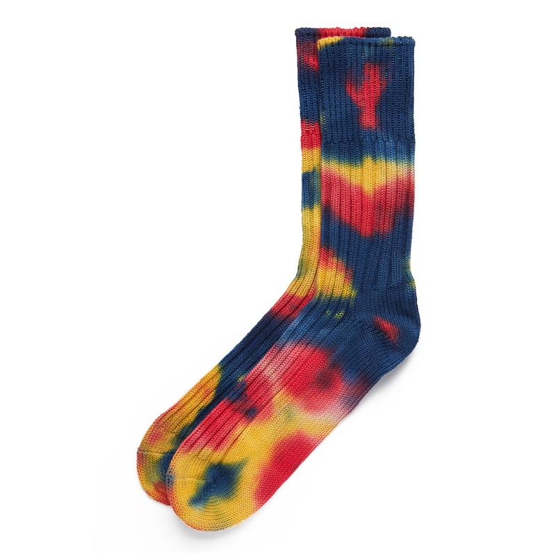 ROTOTO Tie Dye Chunky Ribbed Crew Socks – Red/Blue