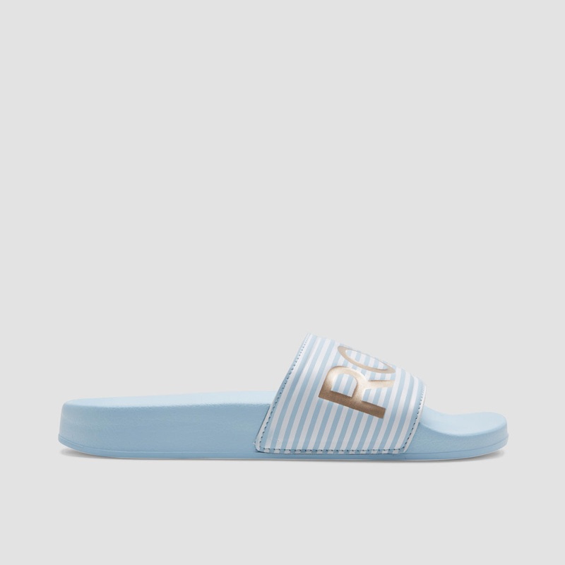 Roxy Slippy II Slides Light Blue – Womens