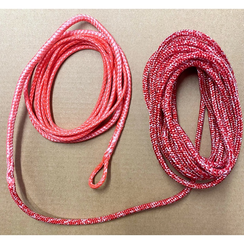 This tapered Kicker Control line makes a real difference to the effectiveness of the Kicker. The outer core has a tight weave to ensure it reduces friction and is tapered to its 3mm core to reduce friction in the kicker blocks. The rope used is the Rooster Allspec Pro red/white 4mm dia.