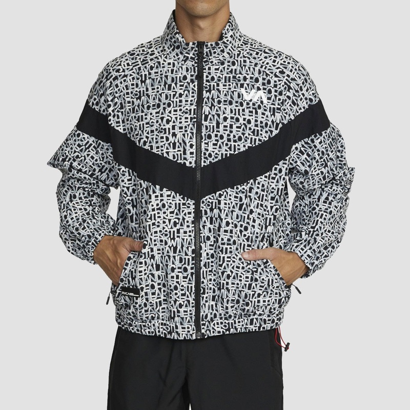A WORKOUT JACKET FOR MEN THAT COMBINES ORIGINAL ARTWORK AND PERFORMANCE FUNCTION, THE RVCA BEDWIN IPFU MENS TRACK JACKET DELIVERS A LIGHTWEIGHT LAYER WITH STANDOUT DESIGN. HIGHLIGHTING AN ALL-OVER PRINT BY JAPANESE ARTIST BANAII, THE MENS TRACK JACKET ADDS