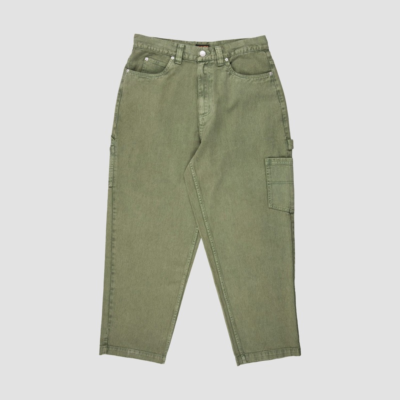 Iguana: 100% cotton twill, garment dyed, 13.5oz denim, baggy fit jeans with front pockets, back pockets, hammer loop/pocket and woven label branding Size 34, Inseam - 30" / Leg Opening - 9 1/8"