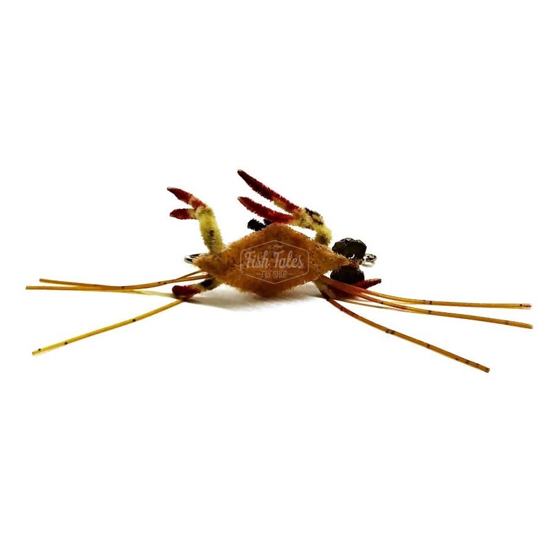SB Flies Velcro Crab Saltwater Flats Fly is a heavy crab pattern with unique flattened lead eyes that are tied on a jig style saltwater hook. Red tipped legs and claws add to a flat body and sili legs that create a super crabby profile that sinks deep.Heav