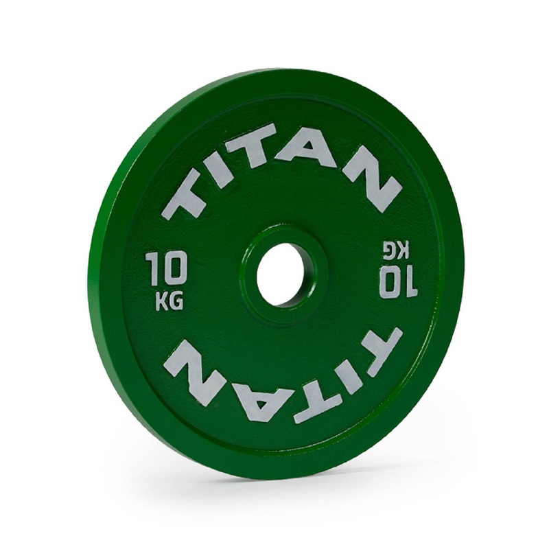 The Calibrated KG Steel Plates are designed and machined to have the thinnest profile available for minimal space usage on the bar. Each plate is color-coded for easy identification and features dual TITAN logos, KG weight indications, and a 50.5 mm collar opening, which fits Olympic-sized barbells. The back of each plate includes calibration plugs for greater precision within a 10-gram tolerance of weight. Suitable for Olympic weightlifting and Powerlifting, these precision discs are developed for but are not limited to squat, bench, and deadlift movements. Smash your daily workouts and hit your PR with these machine-calibrated plates.
