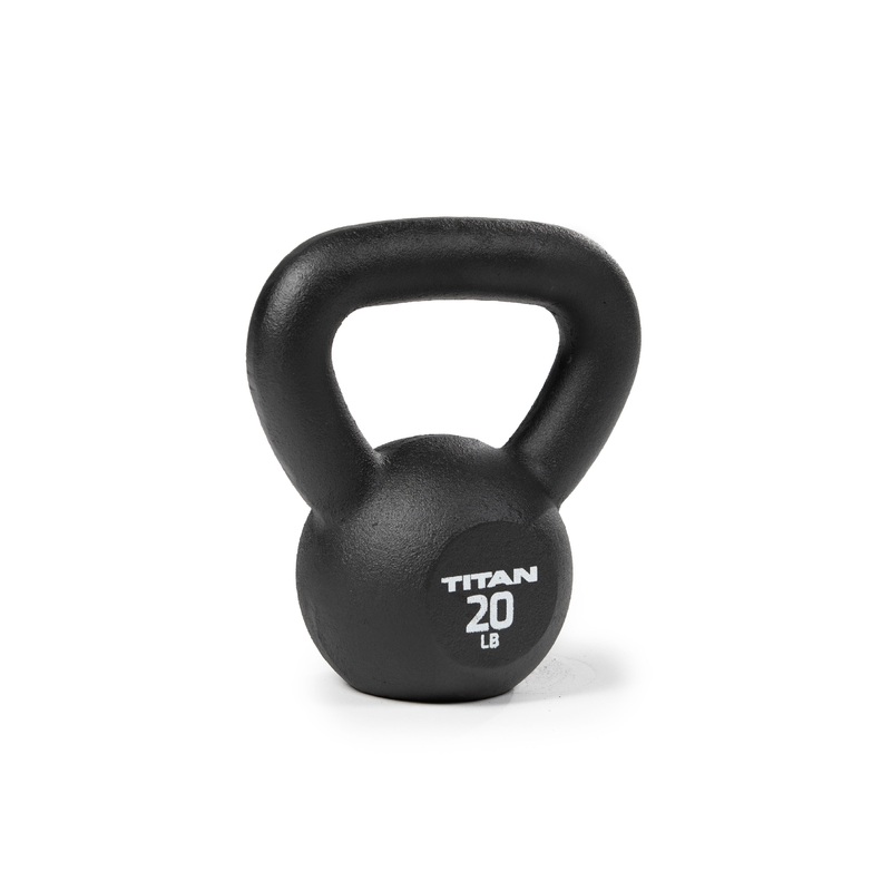 The Cast Iron Kettlebells work as weight resistance and counterbalance for a variety of upper and lower-body exercises. Ranging from 5 LB up to 100 LB, these single, solid piece casts are machined with a flat base that allows for push-ups and no wobbling. Constructed with a durable, smooth wide-loop handle and a round profile with the TITAN logo and LB indication printed on both sides. These kettlebells are an ideal purchase for building muscles, enhancing core strength, and improving balance.