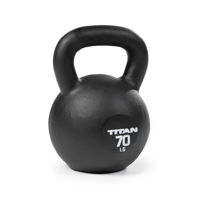 The Cast Iron Kettlebells work as weight resistance and counterbalance for a variety of upper and lower-body exercises. Ranging from 5 LB up to 100 LB, these single, solid piece casts are machined with a flat base that allows for push-ups and no wobbling. Constructed with a durable, smooth wide-loop handle and a round profile with the TITAN logo and LB indication printed on both sides. These kettlebells are an ideal purchase for building muscles, enhancing core strength, and improving balance.