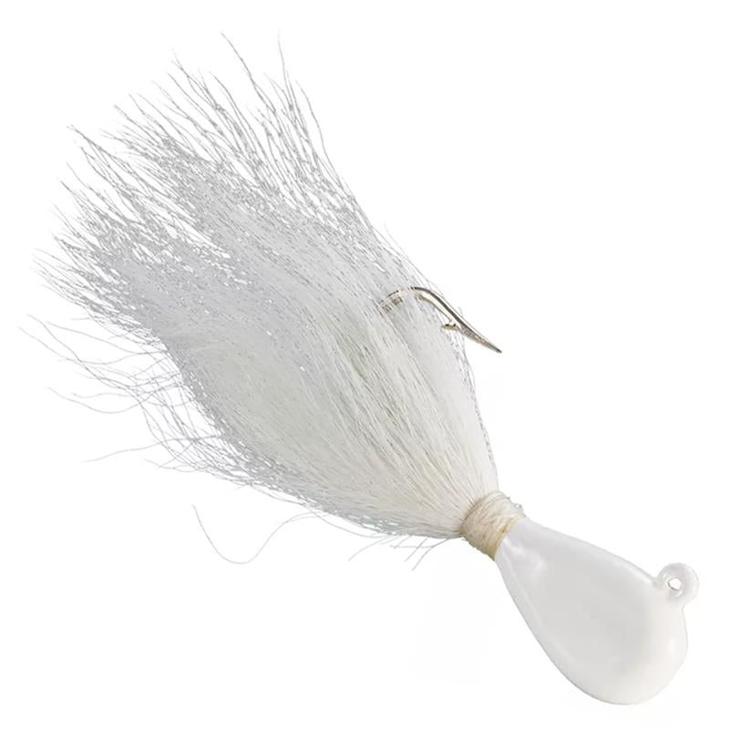 - T12W Bucktail Bean Jig, 1/2 oz, 2/0 Hook, White Head/White Tail, 2/Pack