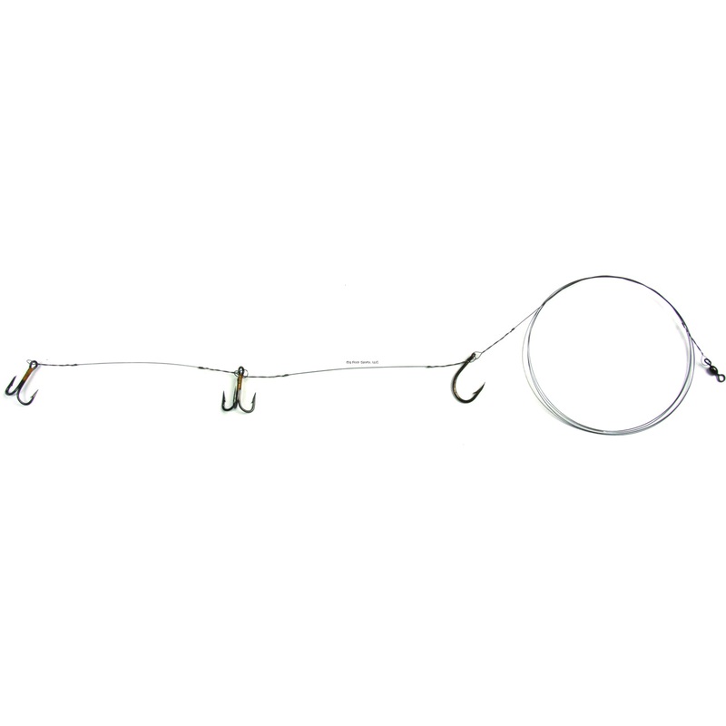 Sea Striker K1S-2T Carolina Live Bait King Rig #5 Solid Wire 1-2/0The slow troll rig for the tournament fisherman. The bronze hooks are professionally snelled with 60 lb. camo coated wire. The nose hook is a live bait size 2/0. Treble hooks are 4X Eagle Cl