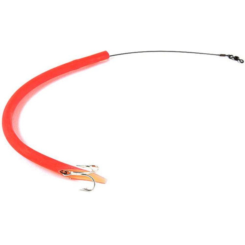 Cuda Tube - 12" Rigged - Fluorescent RedThe Sea Striker Standard Cuda Tube has a 12'' surgical tube rigged with a single 2/0 heavy saltwater treble hook. A single egg sinker is inserted in the head for action. Rigged on 80 lb. coated wire. Great for Barrac