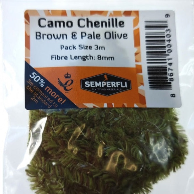 Semperfli Camo Chenille is a unique 100% recycled polyester chenille which behaves much the same as hen feathers with lots of mobility. The polyester is dyed prior to manufacturing the chenille to create a wonderful twin color chenille. This material is ma