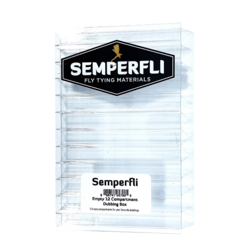 These empty Semperfli Clear Dubbing Boxes, low profile dubbing boxes are slim storage solution for all your assorted dubbings. Each compartment takes a similar amount of dubbing to traditional dubbing boxes but is much neater and easier to use. Use these to store your own dubbing blends.