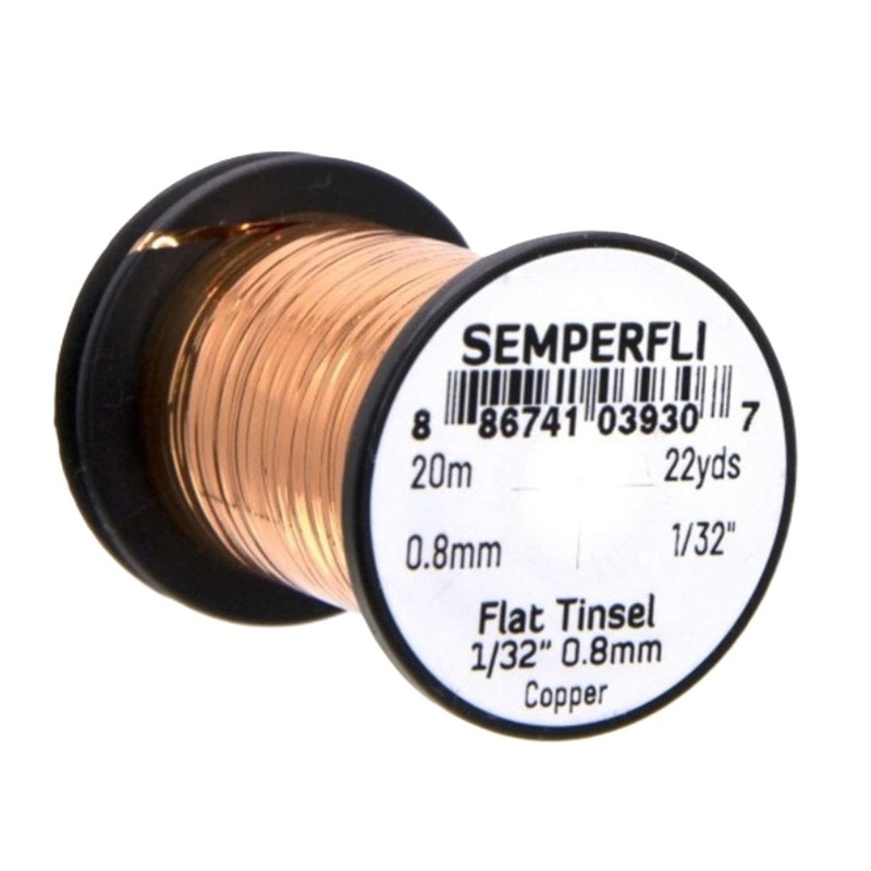 Spooled Semperfli Flat Mirror Tinsel 1/32" is part of a range of the highest quality flat, mirror tinsels available. At 1/32" width, Semperfli Mirror Tinsels have have been redeveloped with a slightly thicker material. Ideal as body wrap on streamers, as r