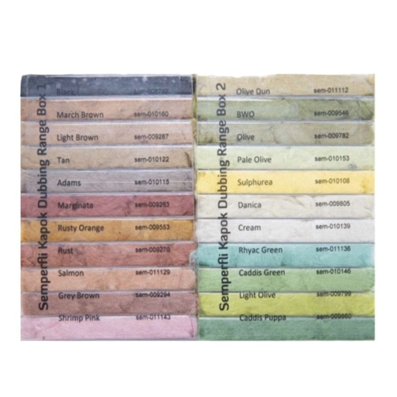 The Semperfli Kapok Dry Fly Dubbing Dispenser is the ultimate collection of dry fly dubbings in the full range of colors. When Semperfli Kapok Dubbing is dubbed into split thread it retains its buoyancy and will help your dry flies float better than any ot