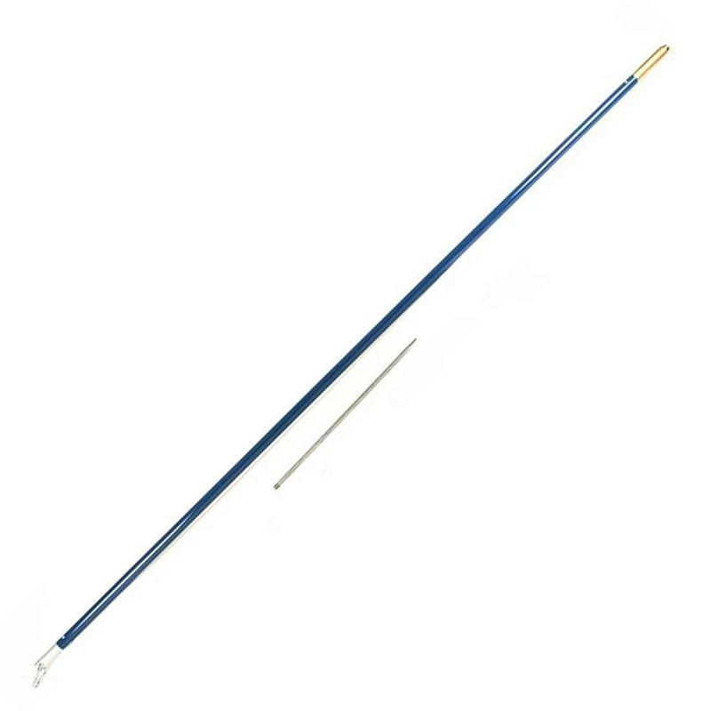 Shoals SH7FTONE is a one-piece Harpoon for those who want to have a top quality one piece harpoon on their vessel. The length of the Harpoon with Pike is 87-1/2 inches long. The Pike is 17-1/2 inches and made of 316 stainless steel. The construction of the harpoon handle is aluminum pipe with blue powder coating . The head piece made of bronze – end piece / carabiner and pike are all included with the harpoon (which comes fully assembled.) The head piece weights approx 1-1/2 lbs — -which ensures enough weight when throwing the harpoon and provides a nice overall balance. The head and end pieces of the harpoon are secured with 3/8 inch stainless steel button screws. The harpoon uses a unique harpoon end cap design with a machined piece that holds the carabiner to clip on the main line.