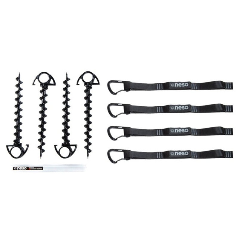 Want to be able to convert your Neso Tent to useoff the beach?Here's a solution!Extra anchor straps and carabiners to retrofit your Neso 1, Neso Grande or Neso Gigante.Durable daisy chain anchor cord with carabiner.Ground Screw Stakes powered by Orange Scr