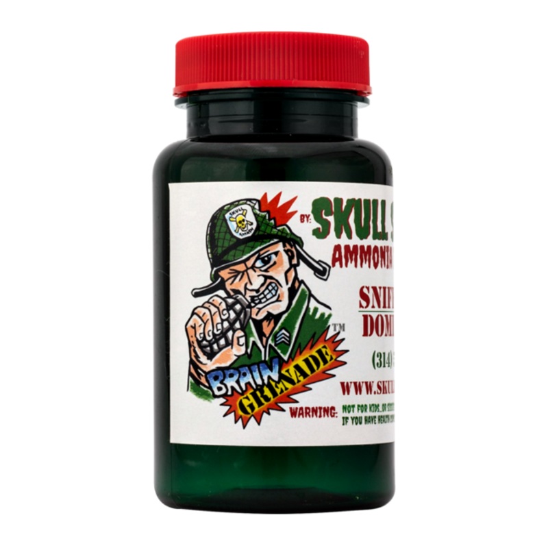BRAIN GRENADESkull Smash products are veteran-owned, quality ammonia inhalants, which are used by many strength athletes to boost intensity and focus before big lifts. There are four labels, each with the same time-tested, popular ammonia formula: Skull Sm