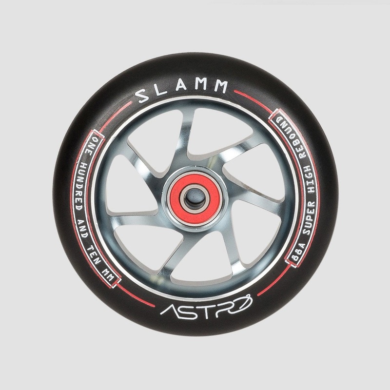 Description: The Slamm Astro 110mm Alloy Core Wheels are the perfect lightweight, strong component for any stunt scooter. Slamm's exclusive design combined with 88A super high rebound Mi-T urethane make these wheels ideal for big jumps and hard impacts. Th