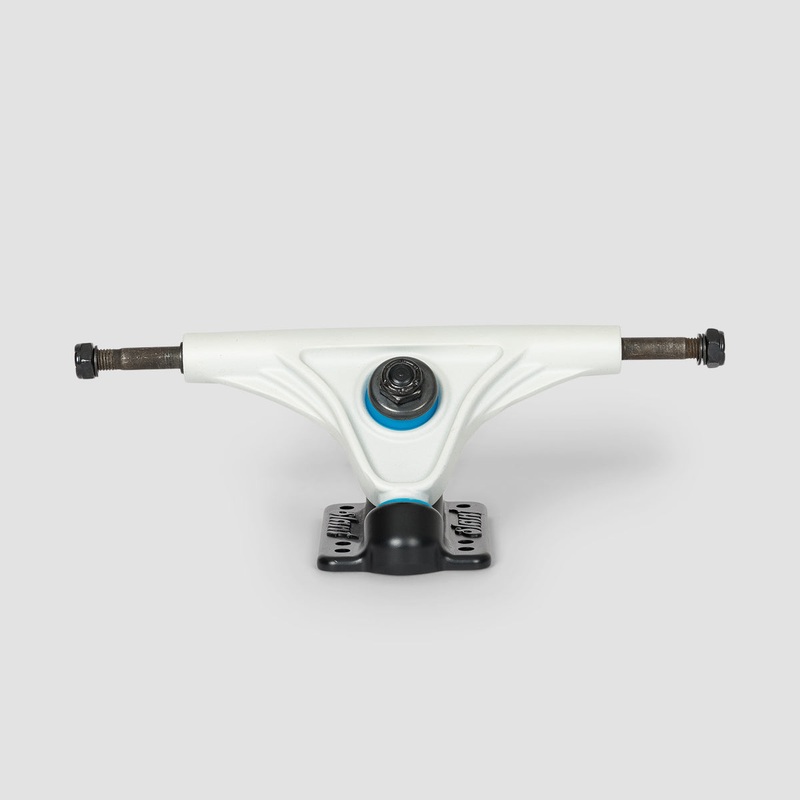 Slant trucks are designed for a variety of uses, from cruising to carving to free-riding. The aluminum cast hangers are reversible for both 54 and 50 degree options. They come installed at 50 degrees for stability at high speeds, or flip ’em over to 54 degrees for tighter turns. They also come stock with a barrel + cone bushing combo. The barrel bushings provide stability while the cone allows for more maneuverability on your carves.
