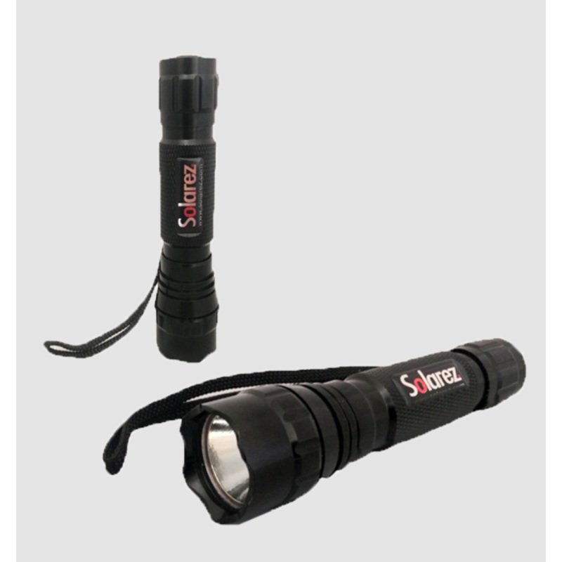 Newest technology SMD ultra high output flashlight. Cures Solarez resin with the correct wavelength. Typically cures Solarez resin in 30 seconds or less. To reduce resin shrinkage and yellowing you can attenuate the light by moving the flashlight on and off the project.This flashlight takestwo (2) CR123 Lithiumbatteries. Or you can use ourBattery Charger Kit.Which contains one 3.7 volt UltraFire rechargeable battery to power your flashlight.