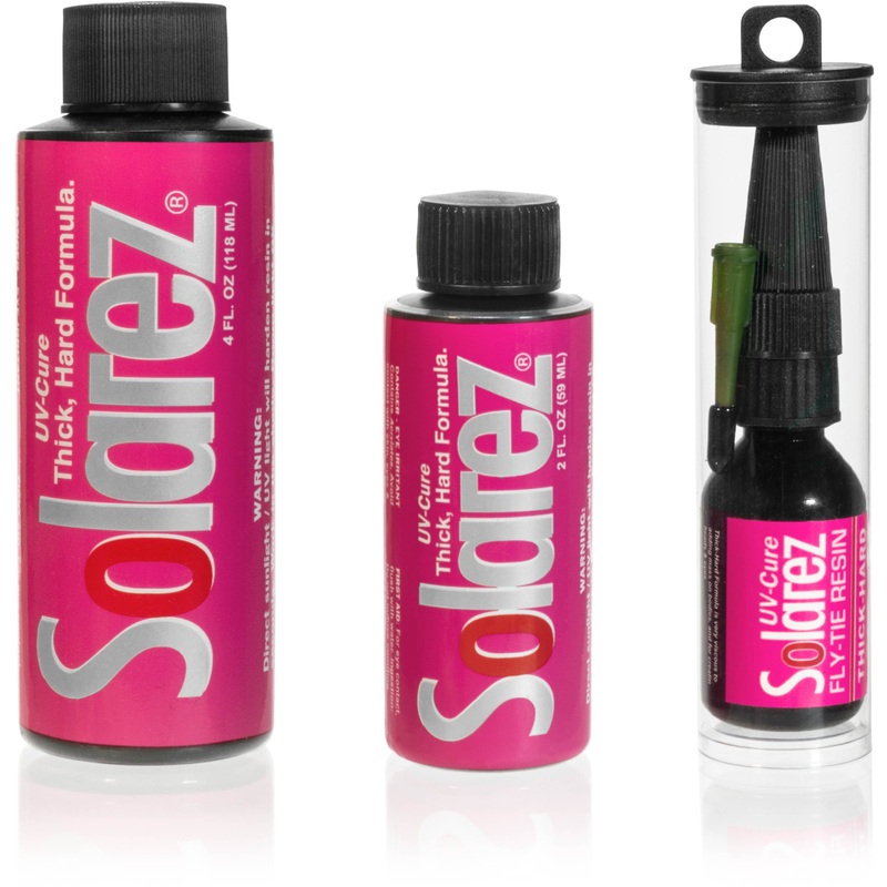 LOW ODOR, CURES IN SECONDS, GUARANTEED TACK-FREE WHEN CURED WITH THE SOLAREZ UV LIGHT SYSTEMS!Thick Hard FormulaHard, very viscous for making thick coatings or spheres bodies, heads, eyesBuild fly fishing heads and bodiesViscous formula, easier to work wit