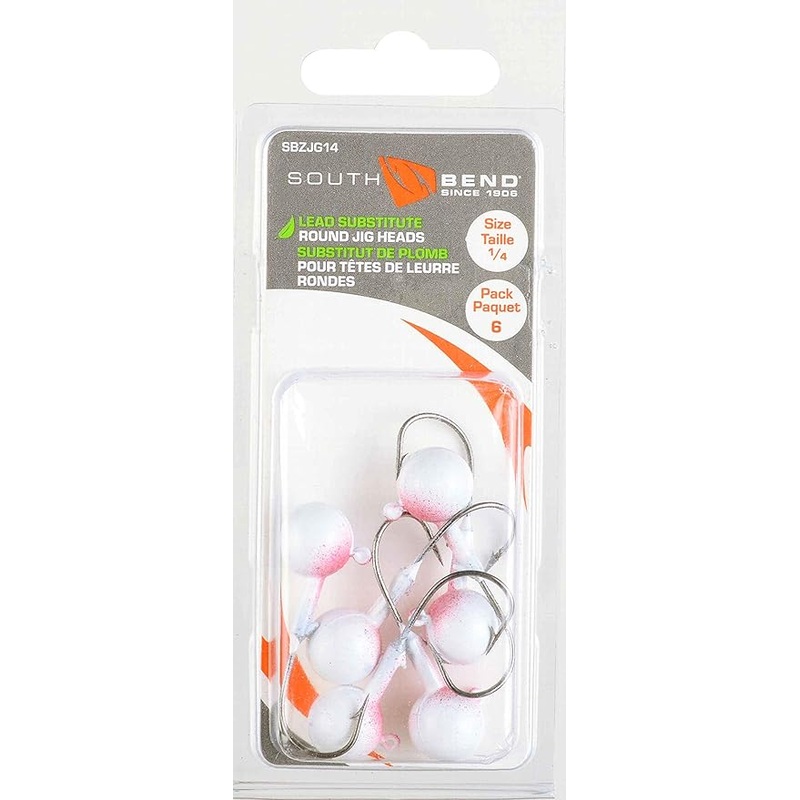 South Bend SBZJG18-WHT Non Lead Round Jigs 1/8 White 8pk