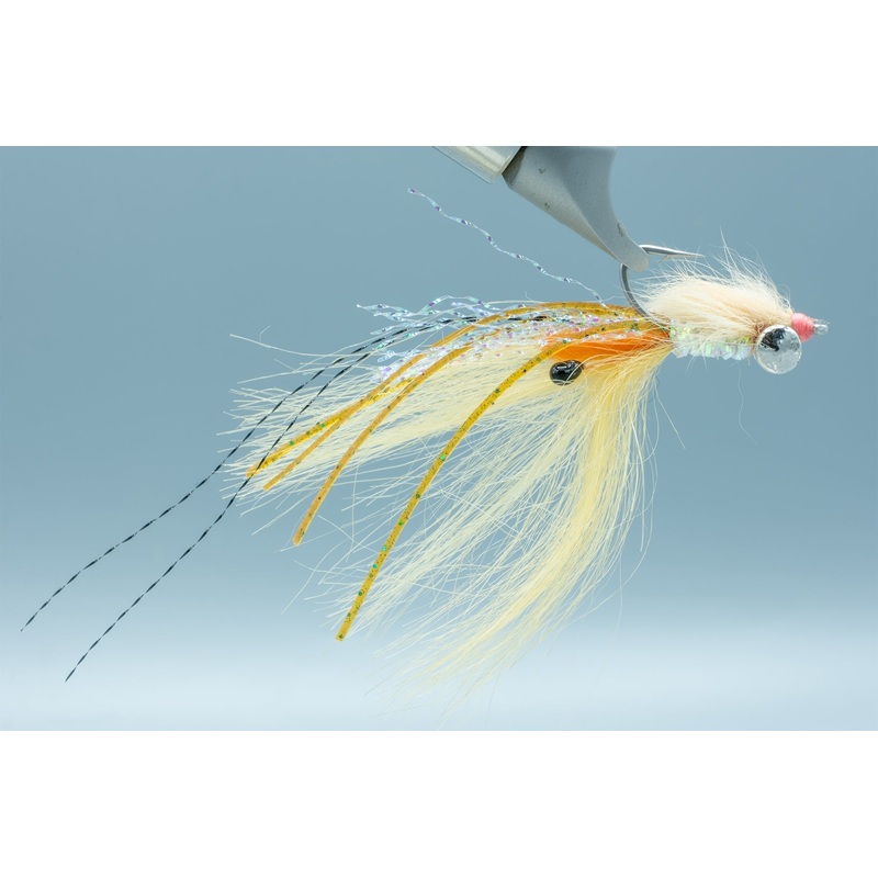 With a rabbit fur body and extended legs, this bonefish fly grabs the attention of every bonefish in the vicinity. Heavy dumbbell eyes get the pattern down, but don't create a big disturbance when it hits the water.