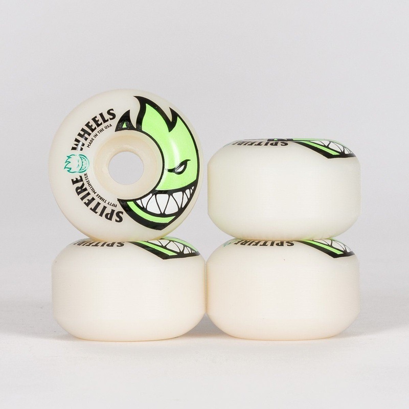The Spitfire Bigheads are a set of 53mm skateboard wheels by Spitfire. Spitfire urethane was developed to combine all the desired properties of a performance wheel without sacrificing any one attribute at the expense of the customer. The original Spitfire