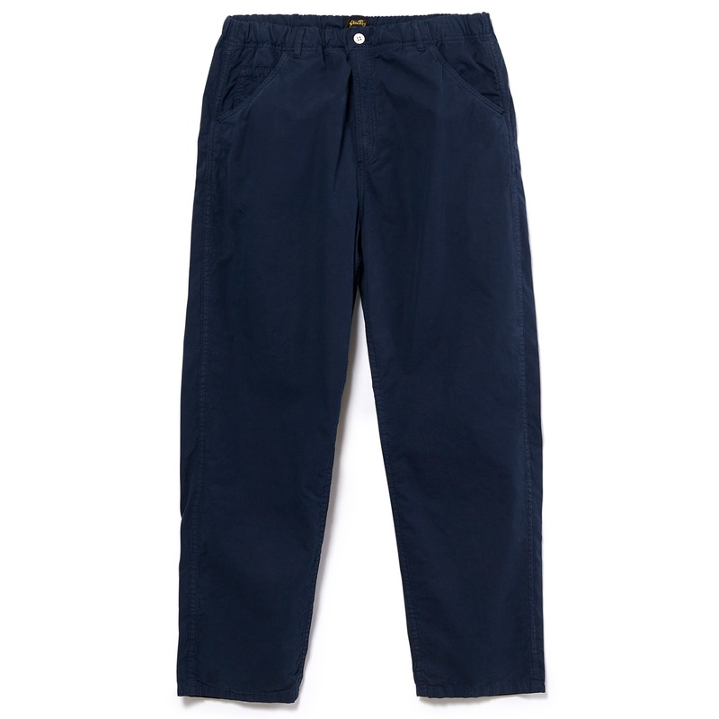 A newer Stan Ray style, the Recreation Pant is a relaxed five pocket style produced in an extremely durable poplin cotton with a reassuring crinkle. An easy-going style for recreation, they have an elasticated, drawstring waist with a relaxed tapered fit f
