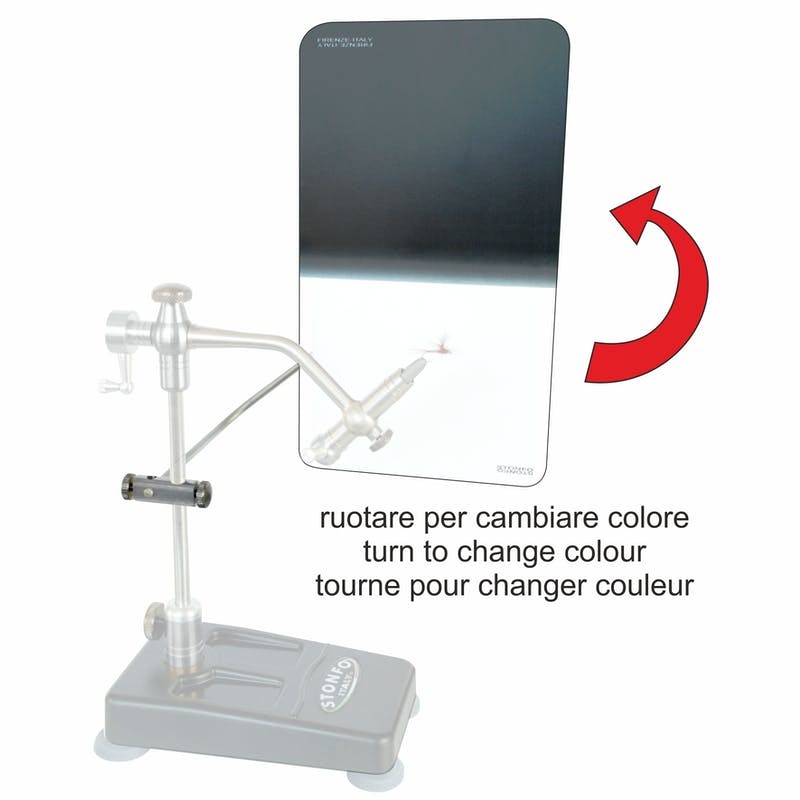 Swivel profile plate for any fly tying vise with an 8-10mm stem. Bicolour black and white for your tying needs. Equipped with a magnetic rest device that allows the rotation of the plate for a quick colour change. Non reflective surface. Vise not included.