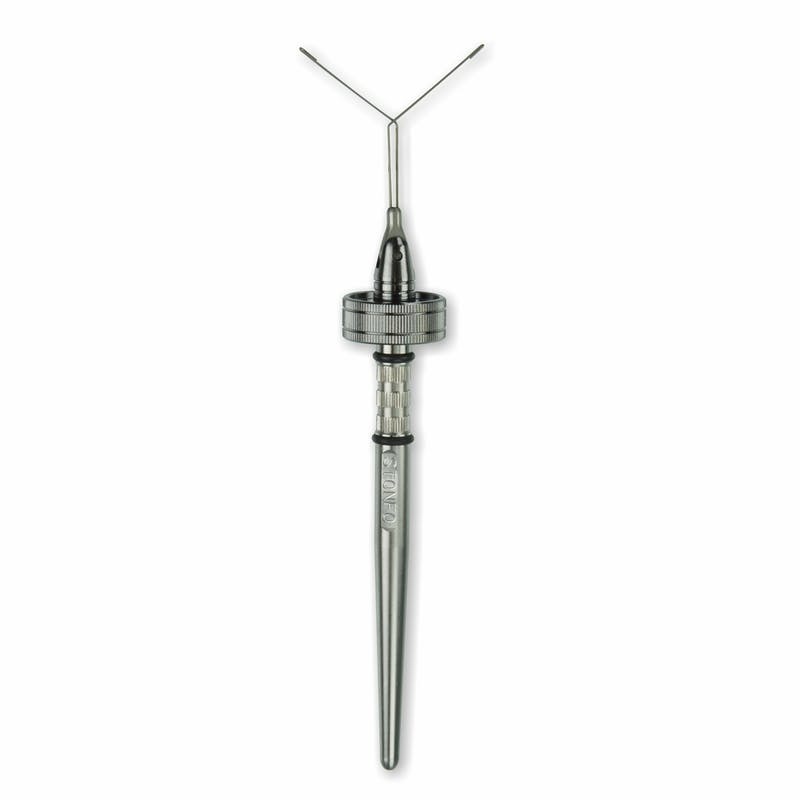 Superior quality dubbing tool made of stainless steel with a ball bearing inside that allows a fast and smooth rotation. Its swinging head permits 180 degrees of free swinging motion with block at center position. The positioning of the head at 90 degrees