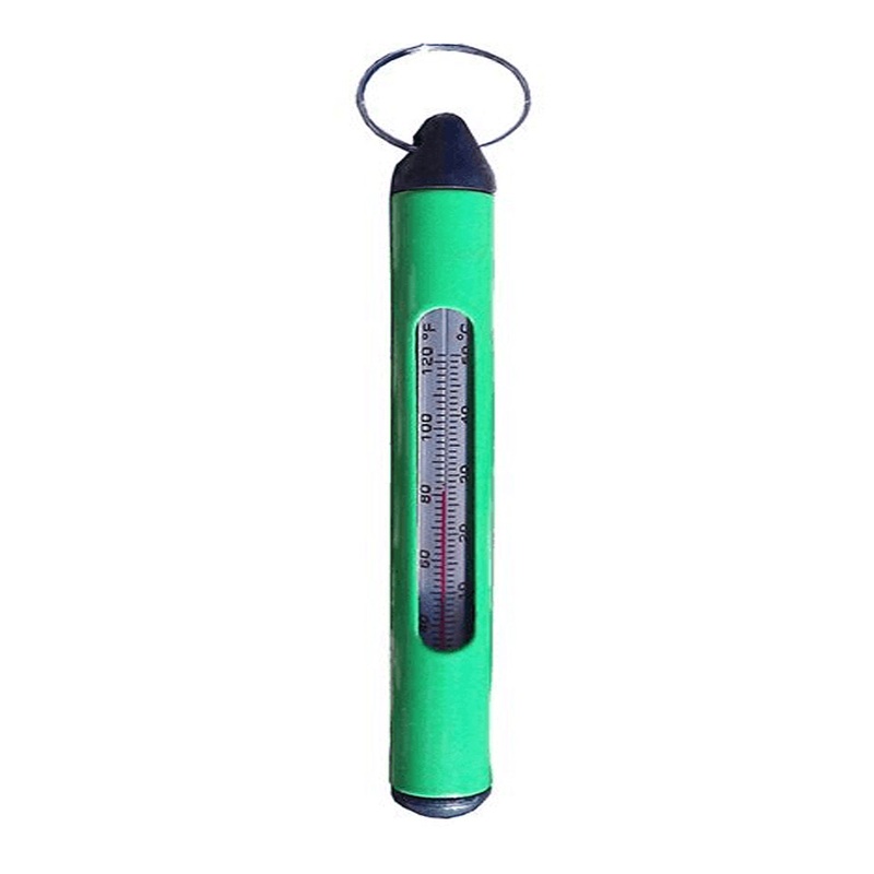 - Encased and protected stream thermometer offers durability and easy accessibility with key ring attachment that clips to a zinger.