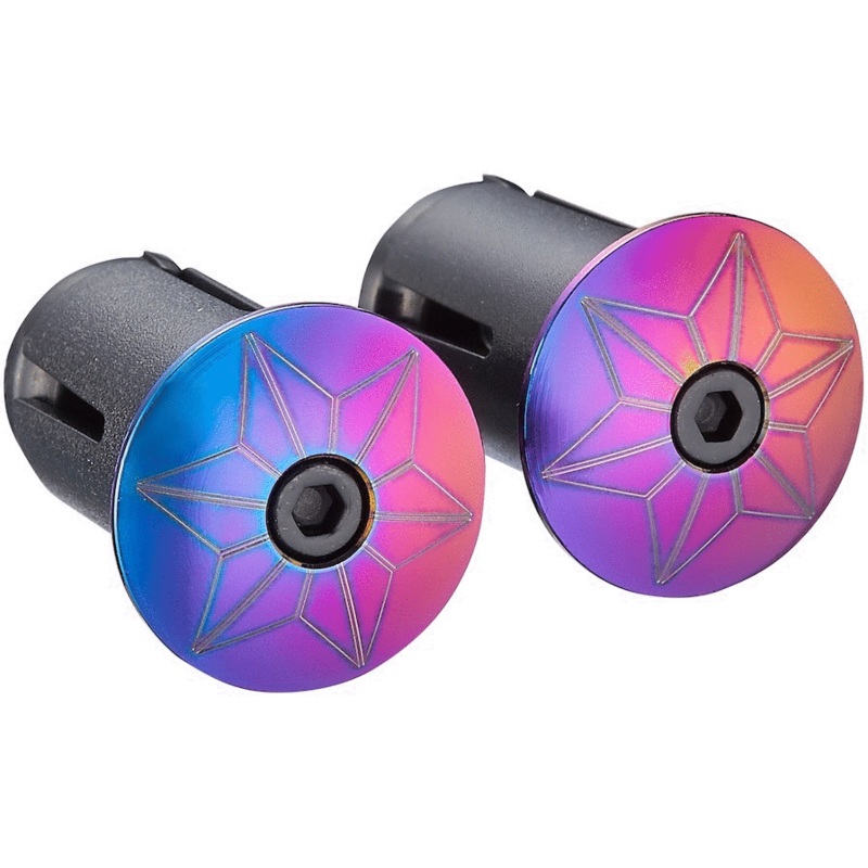 The premier bar plugs in the pro peloton scream style. Colour match or contrast to get that dialled look. Star Plugz are the perfect touch for the perfect cockpit.Oil Slick Aluminum Bar Plugs3mm Screw & ExpandLaser EtchedPatented Lock Tight Crown DesignNev