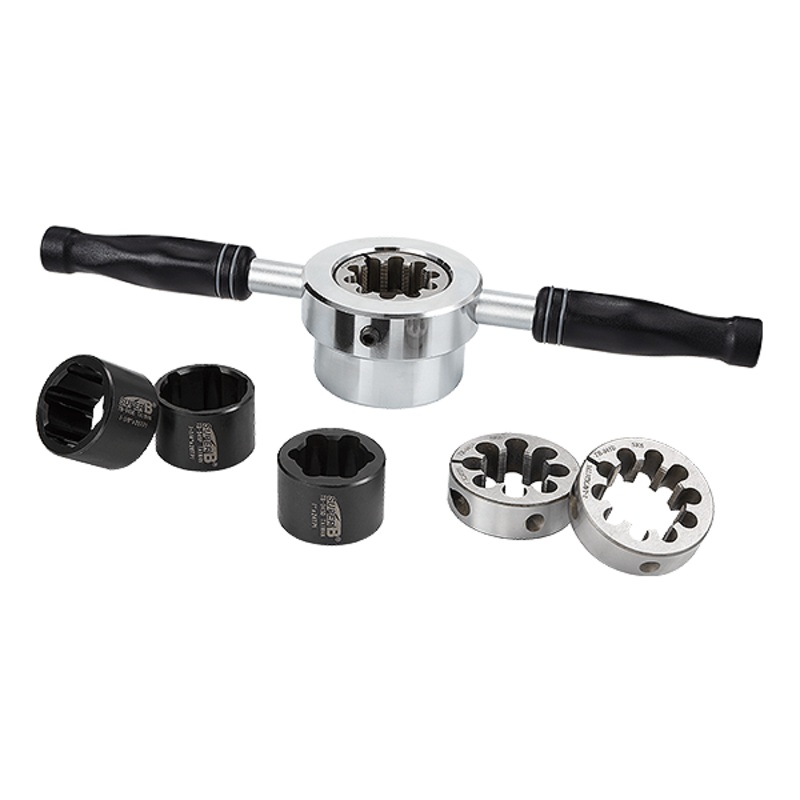 SuperB Workshop Tools Fork Threading Set (TB-1945)Professional design for cutting new threads and chasing existing threads on fork thread set including fork columns that are not chromed.The expandable cutting dies are made from the highest quality speed st