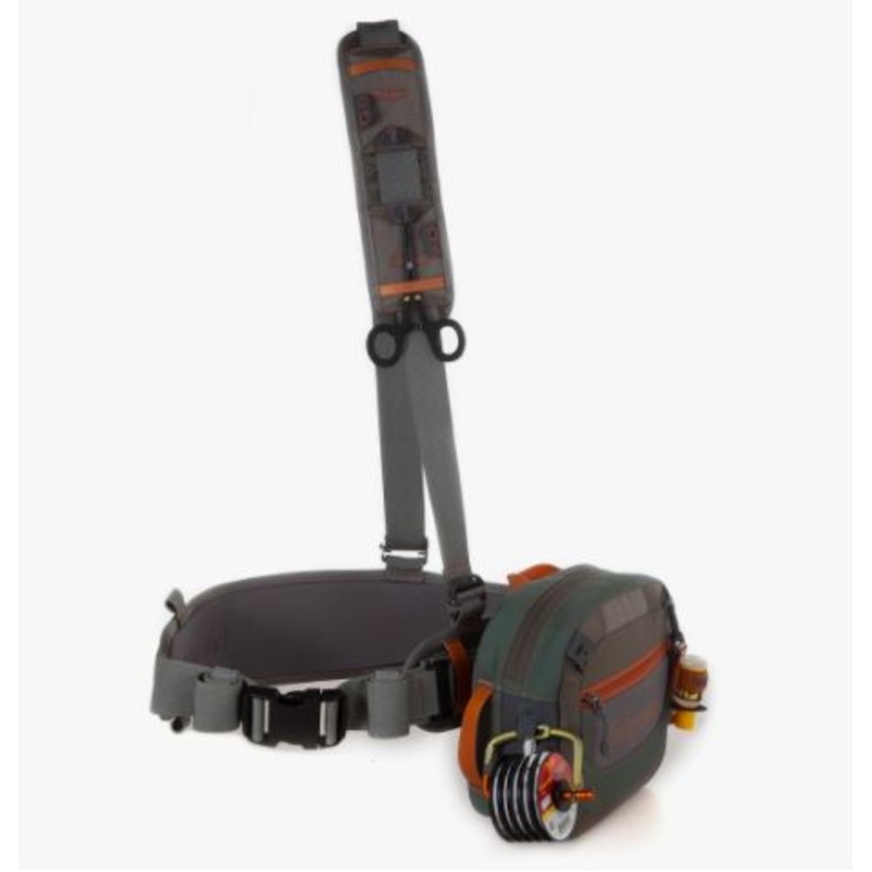 After taking home top honors for the first generation of our Switchback System, it would have been easy to sit back, celebrate, and call it a day. But, thats just not in our DNA. The newly redesigned Switchback Belt System 2.0 sits on the shoulders of its predecessor and adds to a long list of award-winning features. Adding additional storage has never been easier with our new quick-release rail system. Simply detach the speed clip, slide on a Thunderhead Submersible Pouch, Canyon Creek Chest Pack, or other compatible systems, and youre ready to hit the water. Ambidextrous, and equipped with molle slots for water bottle and Quikshot Rod Holders, the new Switchback system elevates the standard for modularity.