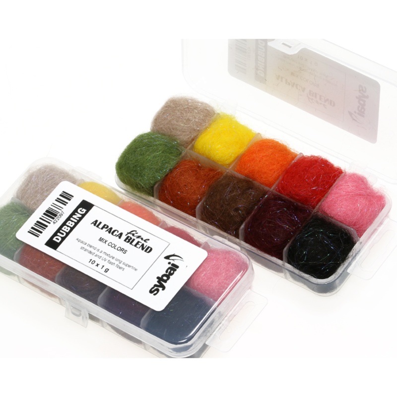 Alpaca blend is a mixture long superfine stranded and UV flash fibers dubbing and very easy to work with. Mix it with a little cdc floatant to get superb floating flies because many strands are hollow. Use for body, winging as a replacement for hares ear or bucktail.