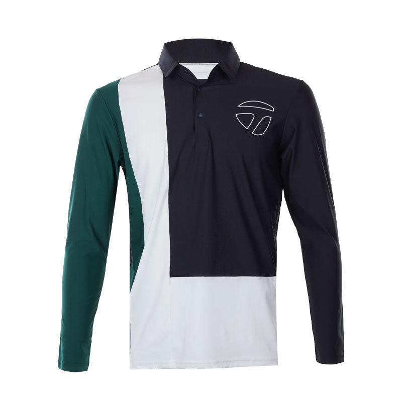 TAYLORMADE Color Block Men’s Long Sleeve Polo (Navy)