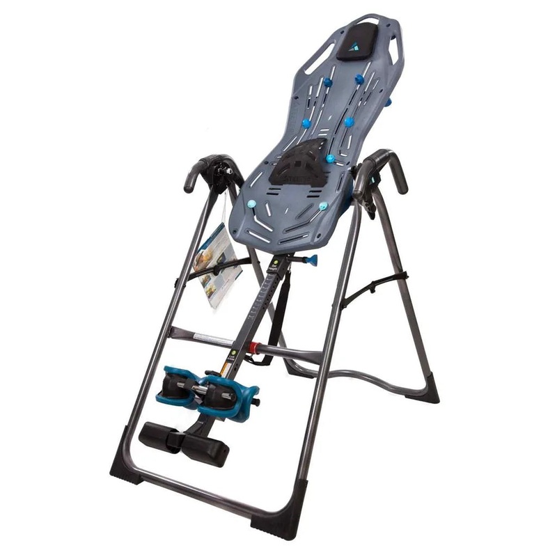 Teeter Hang Ups FitSpine Inversion X1 is recommended for back pain, facet syndrome, herniated discs, sciatica, degenerative disc disease, spinal stenosis, and tight muscles-related spinal curvature. It has cupressure Nodes that offer trigger-point release, and the Lumbar Bridge supports and concentrates traction on the lower back. The FlexTech Bed’s 8-point floating suspension system moves with you for greater mobility and permits the maximum amount of body slide for improved decompression. Grip-and-Stretch Handholds in the bed and frame for more stretching options. Patented wrap-around ankle cups for a cozy, ergonomic fit.