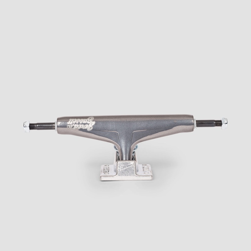Width: 5.5" Height: Standard 55mm All Terrain Geometry Pro Model: Zered Bassett Price is For a Pair Weight: 605g Materials: Aluminium Sizing: 5.5" = 8.125" - 8.375" Recommended Deck Width These 'All Terrain Geometry - Totally Redesigned' aluminium trucks h