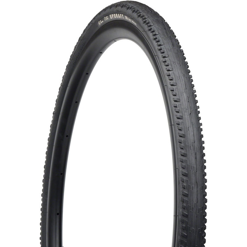 Teravail Updraft Tire - 700 x 35 Tubeless Folding Black Light and Supple Fast Compound. Updraft delivers responsive acceleration and sustained speed on gravel. It features a modern file center tread for speed and pronounced shoulder knobs for confident tac