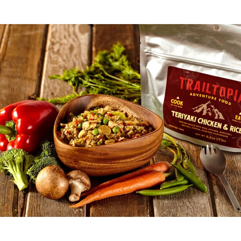 • INGREDIENTS: PARBOILED LONG GRAIN RICE (RICE, NIACIN, IRON, THIAMIN, FOLIC ACID), TERIYAKI SAUCE (SOY SAUCE (WHEAT, SOYBEANS, SALT), WINE, VINEGAR, SALT, ONION POWDER, SPICE EXTRACTIVES), FREEZE DRIED COOKED CHICKEN, FREEZE DRIED BROCCOLI, BROWN SUGAR (SUGAR, CANE MOLASSES), FREEZE DRIED PEAS, FREEZE DRIED MUSHROOMS, FOOD STARCH-MODIFIED, ONION, FREEZE DRIED RED BELL PEPPER, GARLIC