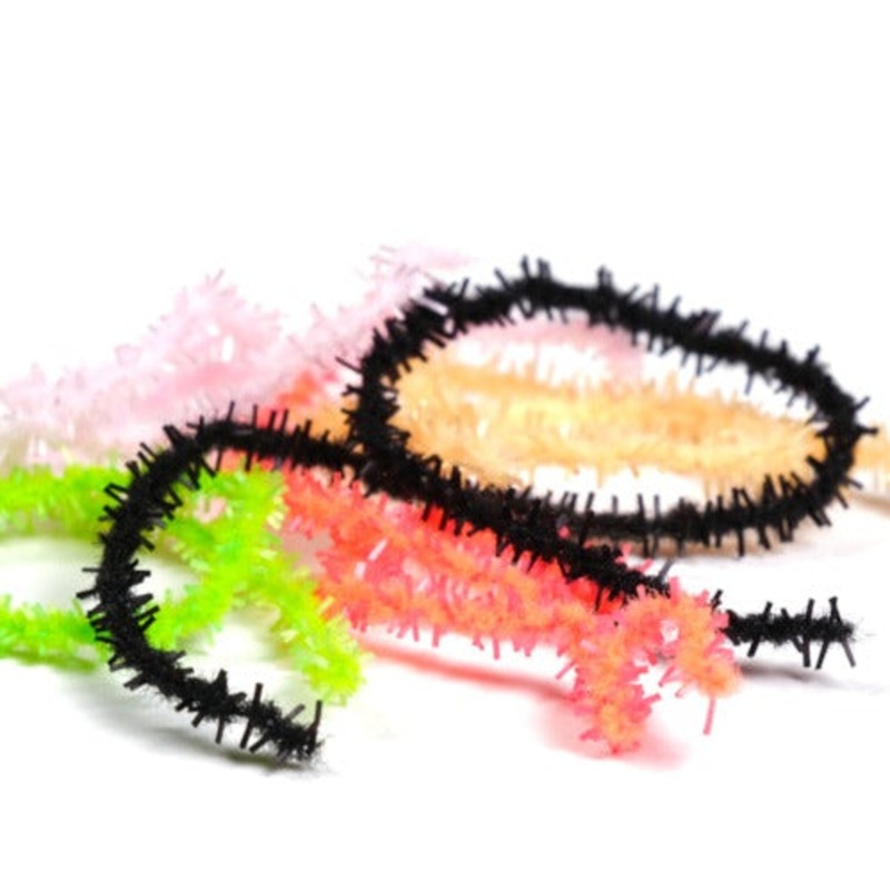 The new Textreme 3mm Gummy Chenille is made with a shiny elastic that gives it a rubbery and deceptive effect. The effect is further amplified by a special silicone treatment during the dyeing phase. The elastic threads are tied to the base with special synthetic fibers that give the right stability during construction, keeping the elastic well stretched and in position. The very thin core is made with the latest generation technical materials that fix the hair fibers holding them as well as possible, avoiding their loss during your tying sessions. The 3mm size is suitable for tying worms imitations, medium-sized nymphs bodies and small to medium sized stillwater streamers.