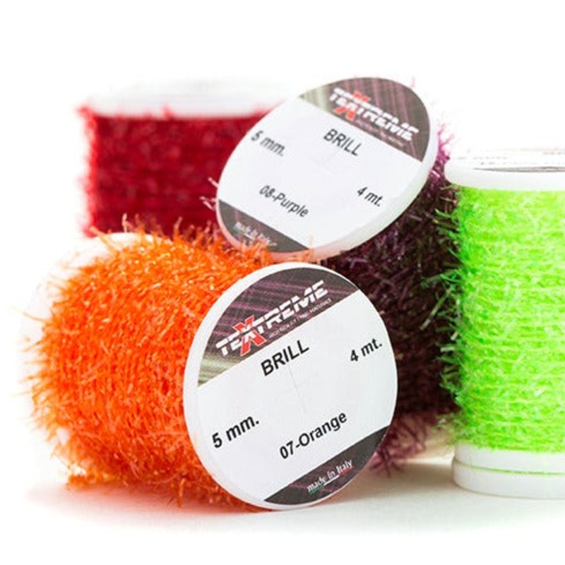 Textreme Brill differs from the classic Cactus Chenille in that it has fibers arranged for effect at much greater intervals, but anchored in a more stable manner thanks to the particularly fine stitching. These features are useful for tying medium to small sized bodies.
