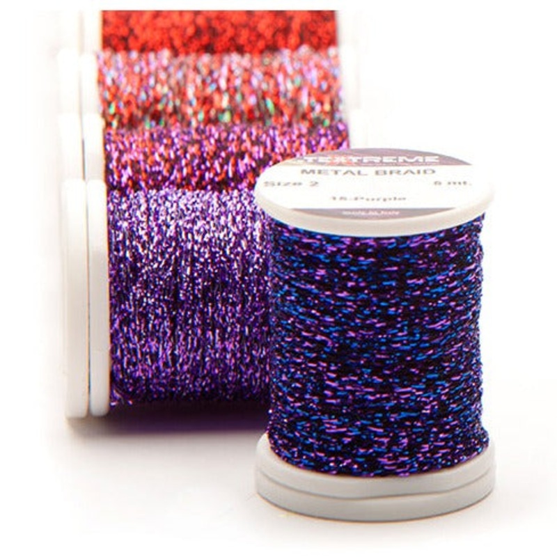 Textreme Metal Braid is a thin braid obtained by mixing two colors, both color-on-color and alternating with ultraviolet and rainbow fibers. The right color for your fly pattern can always be found thanks to the wide range of available colors.Size 25 meter